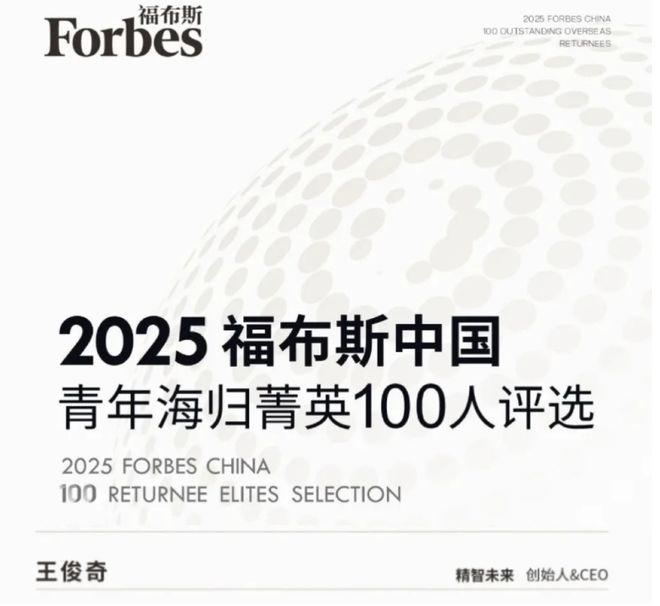 真格天使项目「精智未来」创始人王俊奇博士入选「2025 福布斯中国青年海归菁英 100 人」榜单