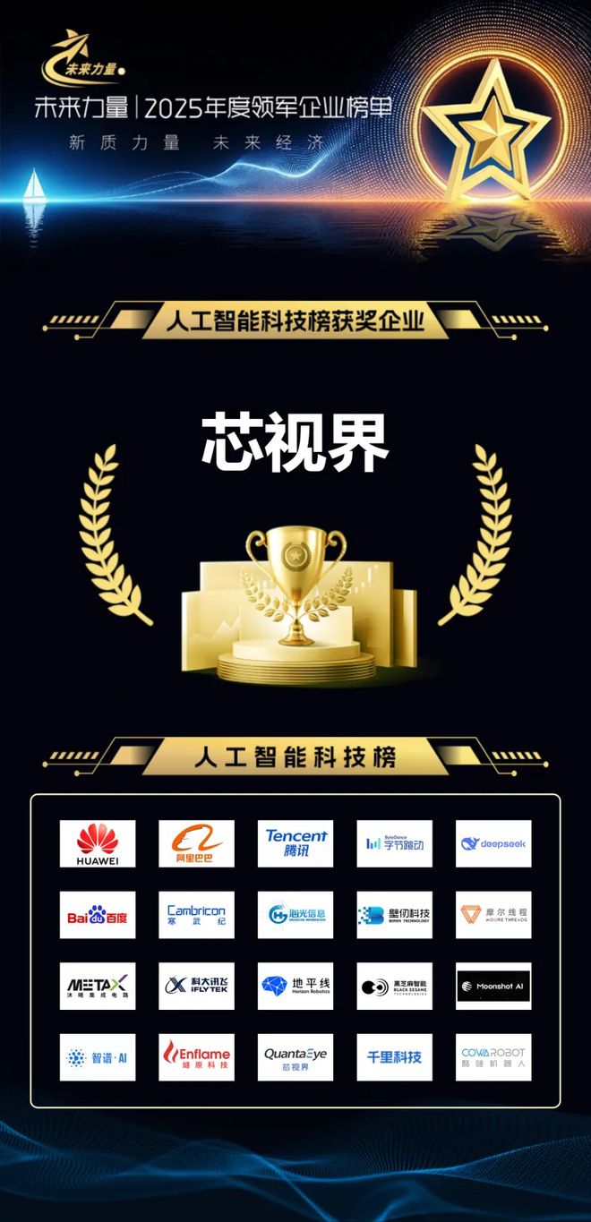 12 月 31 日,证券之星发布 2025 年「未来力量」领军企业榜单,芯视界(北京)科技有限公司凭借在人工智能与光谱传感深度融合的原创性突破,成功入选「人工智能科技榜」,成为硬科技赋能生态环境治理的典范企业。同期入选人工智能科技榜的还有华为、阿里巴巴、腾讯、字节跳动等企业。