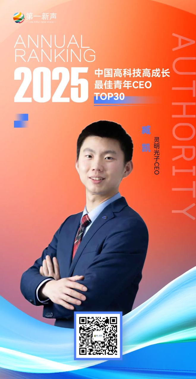 12 月 25 日,国内权威科技产业研究平台第一新声正式发布第五届「2025 年度中国高科技高成长企业及 CEO 榜单」。该榜单已连续五年发布,累计开展 900 余次问卷调研及专家访谈,从技术创新、市场前景、商业落地与团队能力等多个维度进行严格评估。在 3D 传感芯片领域持续突破技术边界、推动商业化落地的灵明光子,荣登「2025 中国高科技高成长未来独角兽企业榜」,CEO 臧凯再度入选「2025 中国高科技高成长最佳青年 CEO TOP30」。