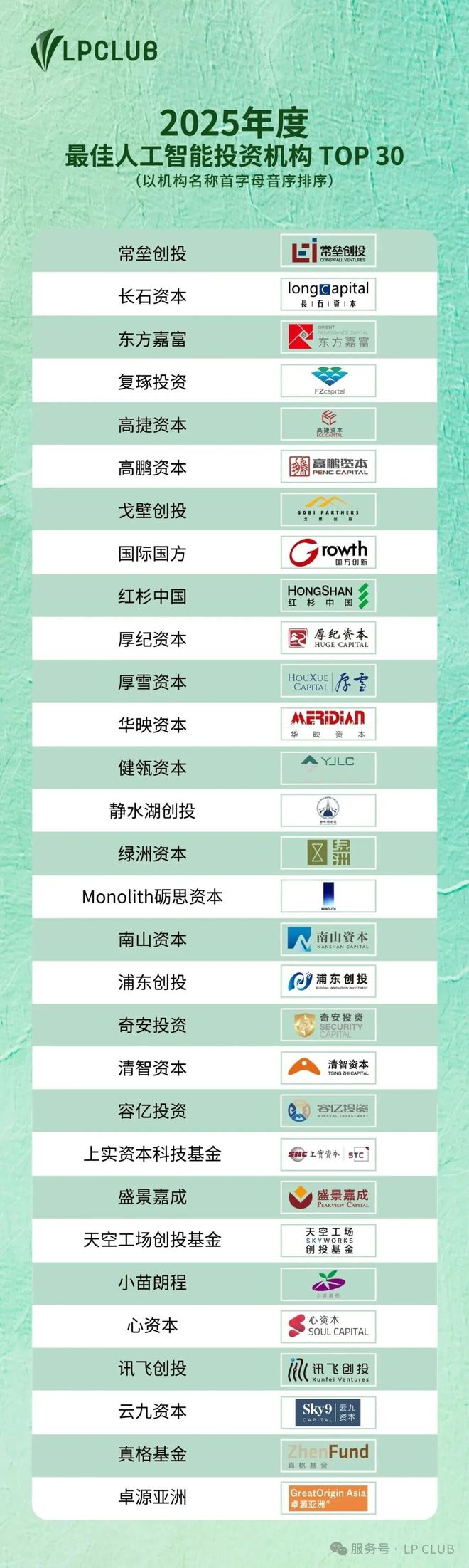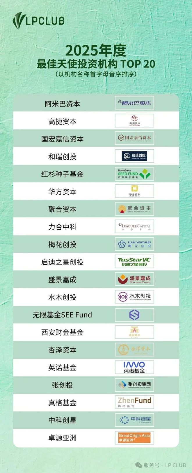 1 月 15 日,LP CLUB 发布「2025 年度中国股权投资排名」 榜单。线 年度最佳天使投资机构 TOP20」「2025 年度最佳人工智能投资机构 TOP30」「融中 2025 年度中国最佳回报早期投资机构」。